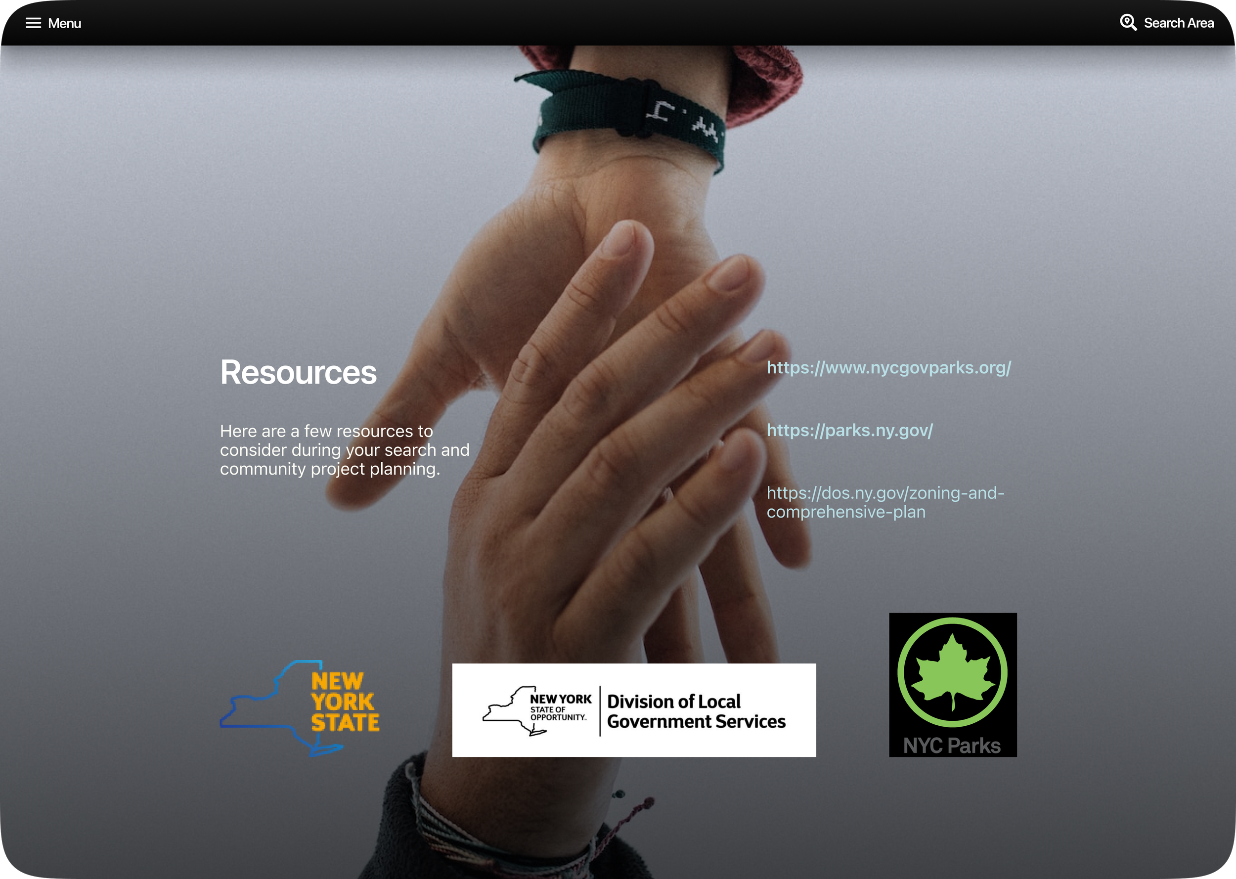 A responsive companion website to a dedicated mobile app of the same purpose. The Duration, January 2022-July 2022. Create a product that allows communities to search and find new park locations and opportunities for outreach. The results will help us to determine what features would make this product more useful and the experience of finding park/outreach opportunity locations from start to finish.